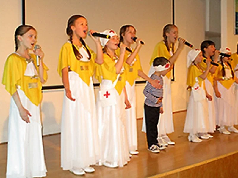 В качестве поздравления для ветеранов на встрече прозвучали известные вокальные композиции в исполнении юных артистов из театра песни «Поющие горошины» - «Голоса Балтики» и солиста ансамбля песни и пляски Балтийского флота Вячеслава Шелестова.